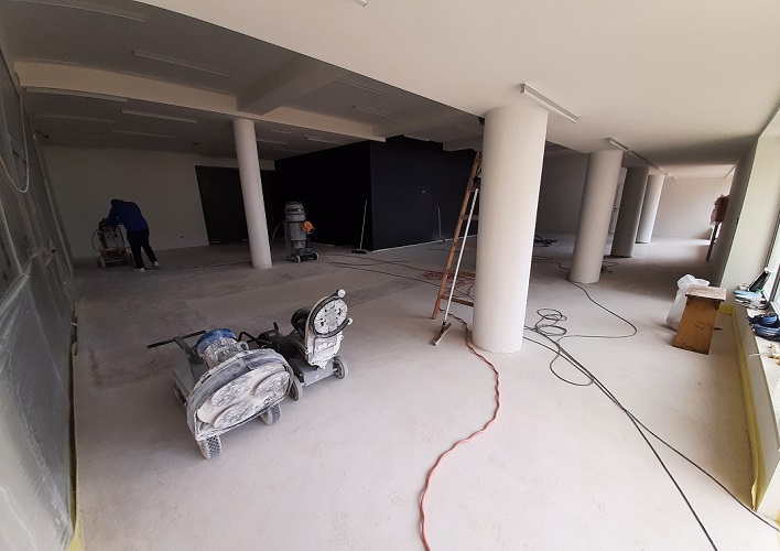 Od toga se, tijekom posljednjih tjedana, dovršava postavljanje takozvanog terrazzo poda u predvorju glavne dvorane, odnosno u tijeku je završno brušenje i poliranje podloge. Ovih dana dovršena je i zamjena limarije, točnije krovne limarije, oluka i gromobrana na frontalnom pročelju zgrade, dok se od manjih radova privode kraju oni na elektroinstalacijama i postavljanju rasvjetnih tijela.