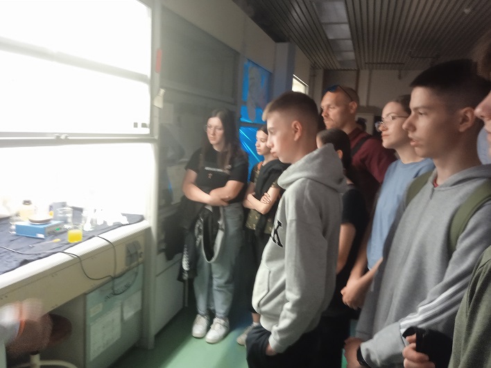 Završili su obilazak kemijskih laboratorija sudjelujući u demonstracijskim pokusima, učeći o luminiscenciji i pobuđenim stanjima atoma.