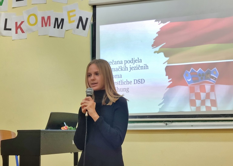 Prigodnoj svečanosti održanoj u plenarnoj dvorani škole, prisustvovali su i okupljene pozdravili ravnatelj Krešimir Bronić, zamjenik gradonačelnika Grada Poreča – Parenzo Elio Štifanić, ataše za kulturu Njemačkog veleposlanstva u Republici Hrvatskoj Nathalie Linow i stručna savjetnica za Njemački jezik iz Središnjice za obrazovanje u inozemstvu te koordinatorica za DSD program u Hrvatskoj Uta Wullenbäcker, te Mirjam Blažević, profesorica njemačkog jezika koja je povela prvu generaciju učenika u poučavanju ovog programa., koja ga danas provodi s kolegicama Suzanom Roža-Brajković, Marlenom Vitasović Orbanić, Marinom Zelenika i Patricijom Baf.