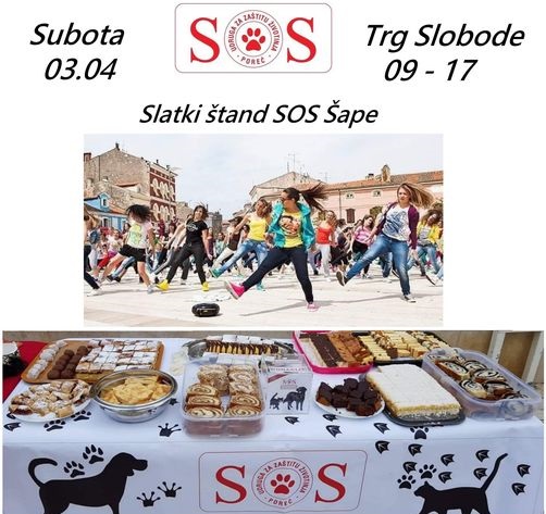 Kad ekipa slatki štand ima organizacije se prima, pa i ovoga puta Udruga SOS Šape Poreč ponovo s vama s najboljim domaćim kolačima u gradu i u suradnji s USB-om – Udrugom mladih Poreč koji će na Trgu Slobode održati plesnu točku u vremenu između 10.30 i 11 sati. A sve to za pomoć onima koji nas najviše trebaju. Svi ste pozvani a mi vas s veseljem očekujemo u što većem broju, poručuju iz ove porečke udruge koja pomaže nezbrinutim životinjama.