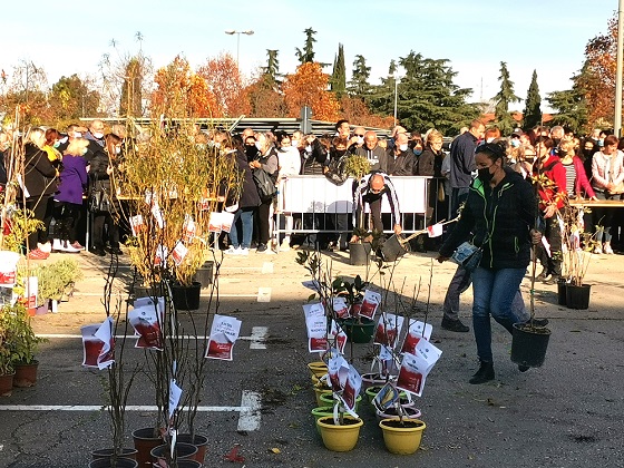 Jutros je bila ogromna gužva na Velikom gradskom parkiralištu u Poreču, gdje je u 10 sati počela četvrtu godinu zaredom akcija pod motom „Dođi po svoje drvo – Vieni a prendere il tuo albero“. Građani su stigli i prije zakazanog termina i stali u red kako bi mogli odabrati neku od 600 komada sadnica koliko ih je bilo na raspolaganju u ovoj akciji. A u ponudi su bili stablo ili ukrasni grm raznih vrsta, veličine i oblika, od miksa voćaka – jabuka, šljiva, bresaka, badema, kakija, limuna, naranči, do listopadnih stabala – vrbi, lipa, platana, magnolija, zatim maslina raznih sorti, crnogorica – pinija, čempresa, tuja do ukrasnih grmova i penjačica – ruža, bugenvilija, jasmina, lavande, ružmarina i mnoge druge. U pola sata sve je razgrabljeno, čime će 2021. biti zabilježena po rekordnom interesu građana.