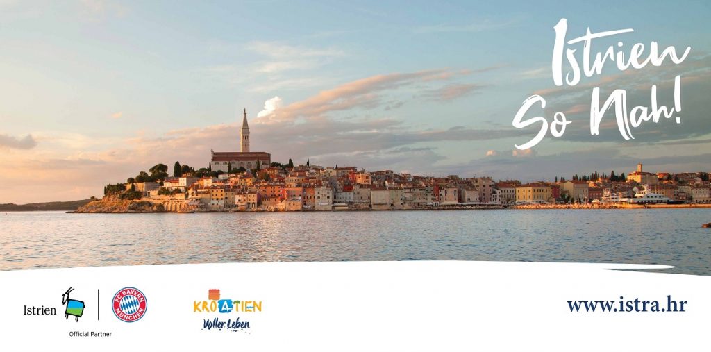 Oglasi koji promoviraju Istru, uz istovremeno isticanje logotipa turističke Hrvatske, sadrže i partnerski logo koji službeno povezuje Istarsku županiju s jednim od najjačih svjetskih brendova – nogometnim velikanom FC Bayern Münchenom. Ugovor o ovom važnom strateškom partnerstvu s Turističkom zajednicom potpisan je prije točno dvije godine, 4. lipnja 2018. godine.