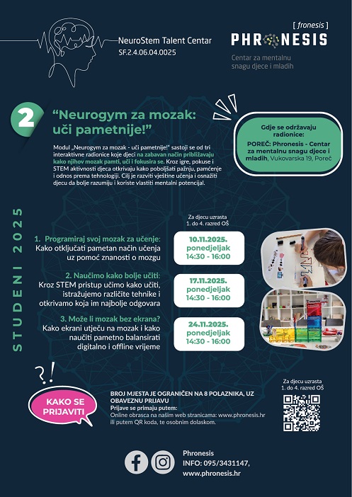 Kroz sve svoje programe i radionice Centar Phronesis nastavlja s misijom poticanja mentalne snage, znatiželje i ravnoteže kod djece – jer kada razumijemo svoj mozak, lakše razumijemo i sebe.