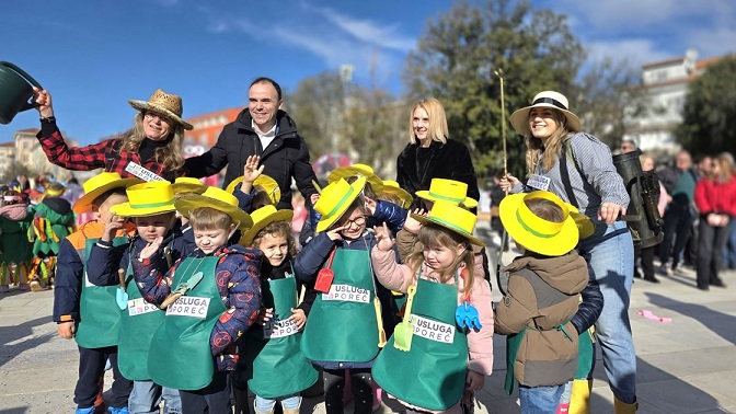 Dječji karneval, u organizaciji Grada Poreča, započeo je u 10 sati okupljanjem maškarica na gradskoj rivi, gdje je potom uslijedila prava maškarana fešta uz glazbu, ples i animaciju. U ovogodišnjem izdanju sudjelovale su skupine iz svih porečkih dječjih vrtića – Radost, Paperino, Poreč-Parenzo, Crvenkapica i 101 Dalmatinac.