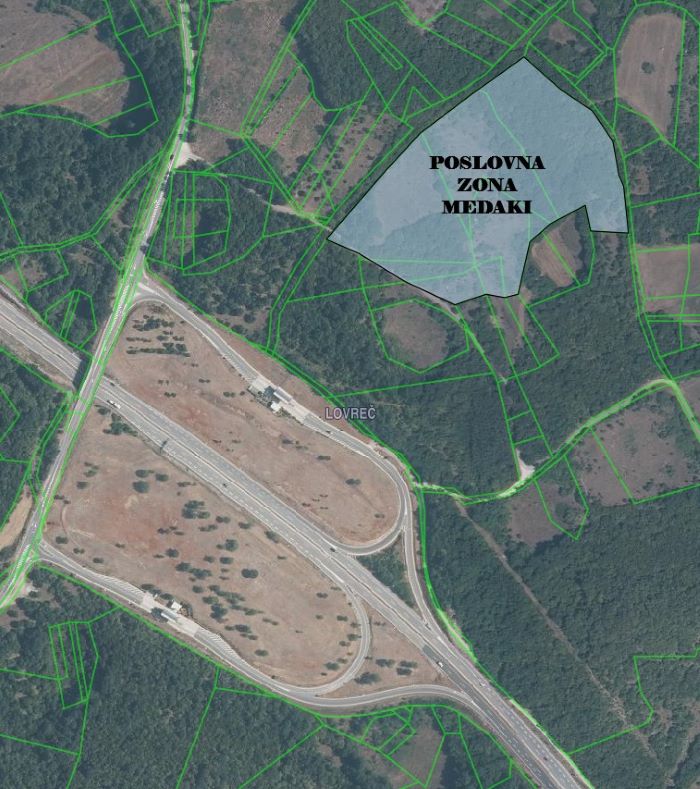 Poslovna zona Medaki prostire se na nekoliko katastarskih čestica (5011/2, 5013, 5011/3, 5011/4, 5011/1, dio 5007, dio 5003/1 i dijelu 5011/5), sve K.O. Lovreč ukupne površine 3,61 ha.