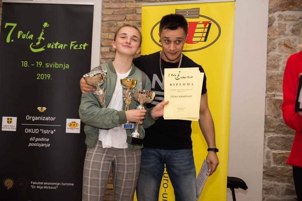 – Chiara Vukadinović, u klasi učitelja Hrvoja Hleba, u II. kategoriji solo gitare osvojila je 1. nagradu, pehar i 1. mjesto s 99,10 bodova, pehar za najviše bodova u prve tri kategorije te proglašena apsolutnom pobjednicom natjecanja i dobitnicom prijelaznog pehara za najviše osvojenih bodova na natjecanju.