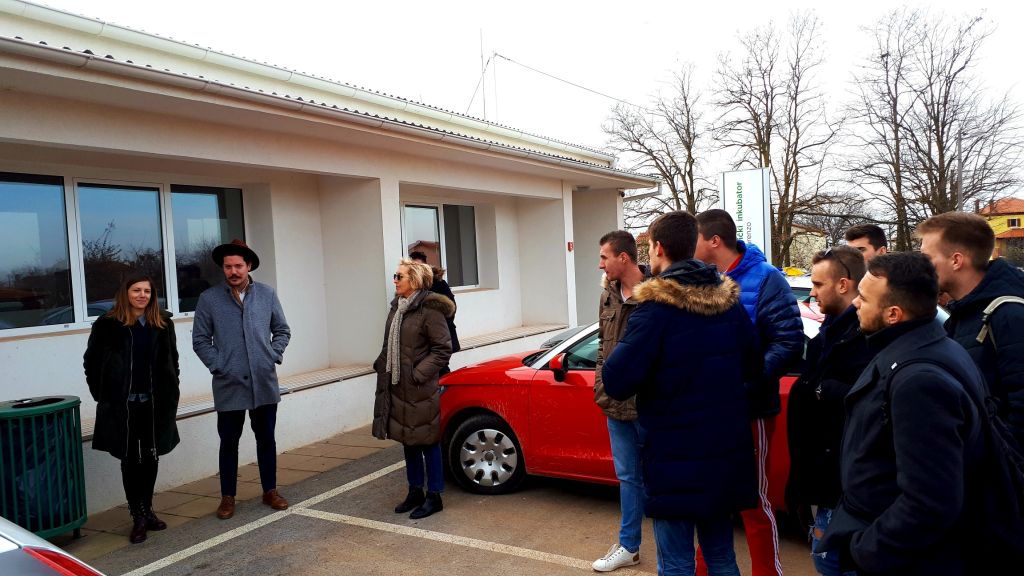 Nakon gradske uprave, studenti su u organizaciji Grada posjetili Poduzetničku zonu Buići-Žbandaj. Tamo su ih ugostili predstavnici trgovačkog društva Fusio d.o.o., vodeće tvrtke na području projektiranja, opremanja, proizvodnje i servisa ugostiteljske opreme. Direktor Nenad Štefanić je studentima kroz jednosatni obilazak proizvodnog pogona te prezentacijskog i prodajnog salona prezentirao rad ove uspješne firme, sve detalje od proizvodnje do prodaje kupcima diljem svijeta. Nakon poduzetničke zone, pročelnica Mičetić Fabić im je predstavila Poduzetnički inkubator u Žbandaju te su tom prilikom mogli čuti iskustva stanara inkubatora, koji svoje start-up obrte vode upravo iz nekadašnjeg društvenog doma, koji je 2015. otvoren kao Poduzetnički inkubator Poreč.
