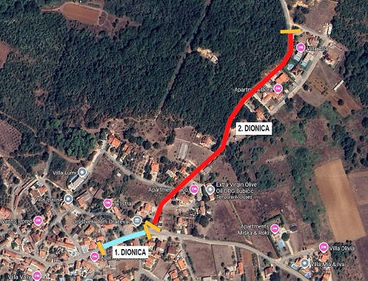 Zatvara se prva dionica od autobusne stanice do raskrižja kod društvenog doma prema naselju Montižana te druga dionica od raskrižja kod društvenog doma u Dračevcu prema naselju Radmani, sukladno prometnoj situaciji.