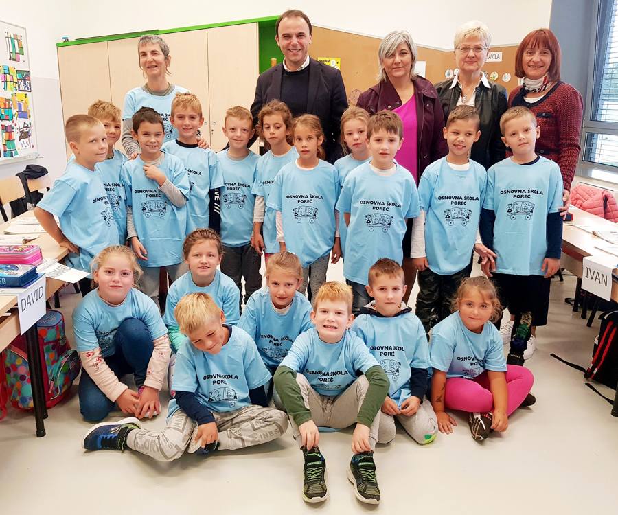 Majice su dobili i prvašići TOŠ Bernardo Parentin i učiteljica Iva Debeljuh, koje je danas obišla zamjenica gradonačelnika Nadia Štifanić Dobrilović u društvu ravnateljice Ester Zarli.