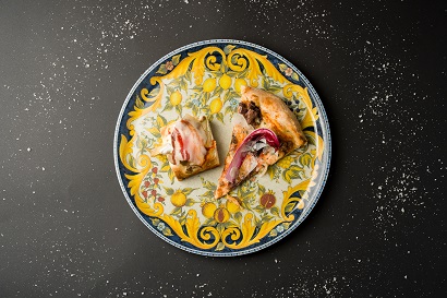 U prvom, vegetarijanskom izlazu kušala se pinsa romana sa sous-vide sezonskim povrćem, fior d’Agerola sirom i kremom od parmezana s tartufima, dok je druga pizza, s rukolom, rađena na njihovom vlastitom pizza tijestu – izravnom zamjesu s dodatkom kiselog tijesta, čime je naglašena razlika u strukturi i aromi.