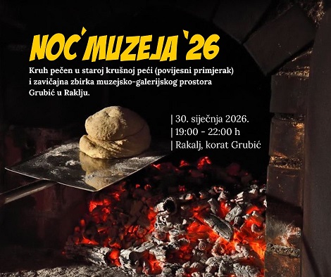 Nakon Loborike nastavite do Raklja. Pored crkve, u korti Grubić od 19 do 22 sata pripremati će se najukusniji kruh – pečen u staroj krušnoj peći (povijesni primjerak). Uz glazbenu podlogu razgledajte zavičaju zbirku obitelji Bolković i podružite se s domaćinima.