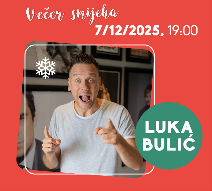 Prvi će na pozornicu stati Luka Bulić, koji nastupa 7. prosinca u 19 sati i najavljuje večer ispunjenu svojim prepoznatljivim humorom i energijom.